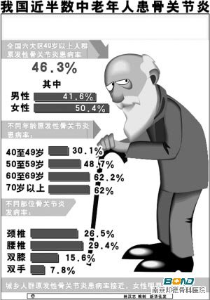 骨关节炎是一种常见的关节疾病,中老年人更是此病的高发人群。的说,骨关节炎是一种退行性病变,系由于增龄、肥胖、劳损、创伤、关节先天性异常、关节畸形等诸多因素引起的关节软骨退化损伤、关节边缘和软骨下骨反应性增生,又称骨关节病、退行性关节炎、老年性关节炎等。所以,老年性骨关节炎就是一般人们所说的骨关节炎,两者没有本质差别。