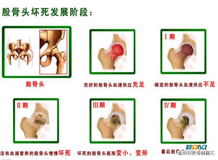 南京邦德骨科医院,南医大合作医院的专家提示,股骨头坏死的X线分期方法很多,但一般采用Arlet,Ficat和Hageffard的5期分法:【不换股骨头,如何治疗骨坏死】
